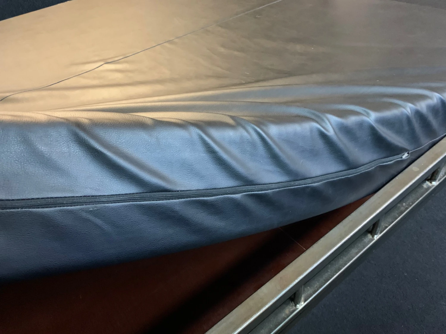 Hoogwaardig koudschuim matras voorzien van een skai leder hoes met ritssluiting.