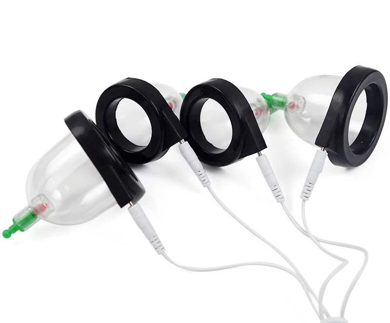 Electrosex vacuum cupping set voor stimulatie van de borsten, tepels, penis, rug, billen en meer. Laat een tijdelijke ‘zuigzoen’ achter op de huid. Deze fantastische cupping set is het ideale accessoire voor medical fetish, bondage en electrosex.