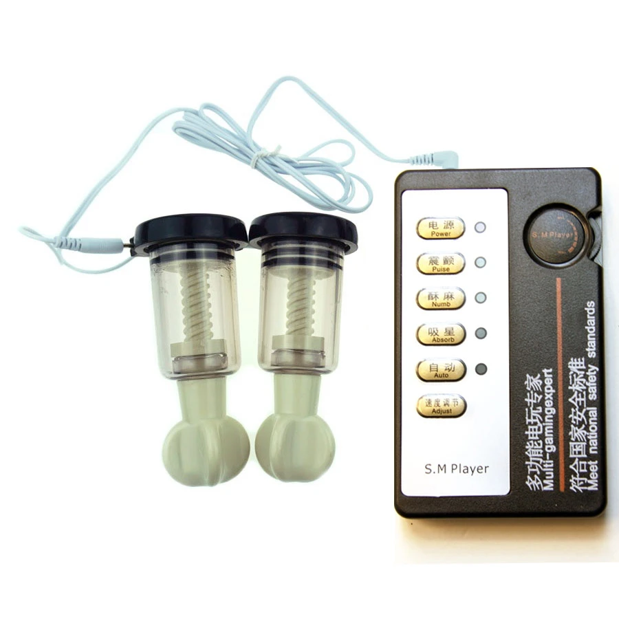 Complete set electrosex tepel zuigers met powerbox. Shockeren of zuigen.. waarom niet allebei? Simpelweg deze electro nipple suckers op de tepels plaatsen, aandraaien met de knoppen en op de electro power box aansluiten om de vonken ervan af te zien spatten. De set bevat twee zuigers (Ø binnenkant: 25mm), powerbox en een kabel om ze beiden aan te sluiten.