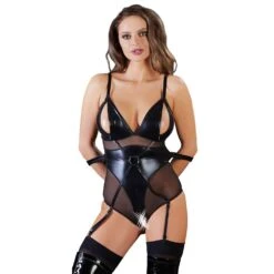 Carmen Fetisj Zwart Lederen Bovenborst Korset Met (halter) A-lijn En Lamslederen Voering