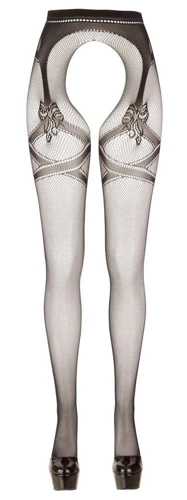 Jarretel kousen met open kruis gemaakt van fijn, zacht net.