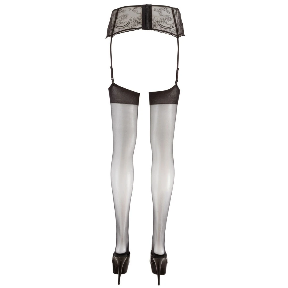 Jarretel kousen met gevormde voeten en een comfortabele kanten top. Zwart. Oeko–Tex gecertificeerd stof.