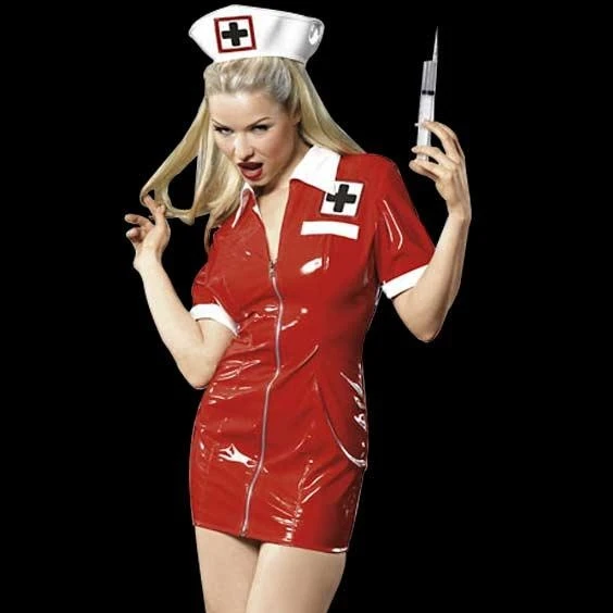 Mini jurkje met een doorlopende ritssluiting in geval van (seksuele) nood. Wordt geleverd met wit verpleegster mutsje.