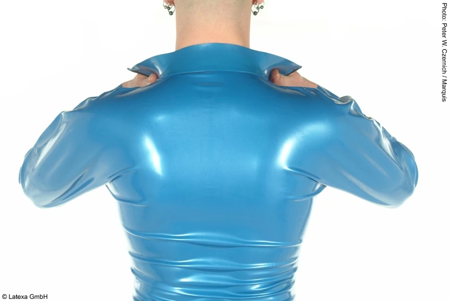 Latex hemd met lange mouwen en ritssluiting, volledig gelijmd en gemaakt van 0,4 mm latex.