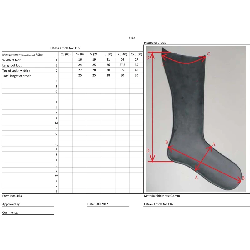 Iedereen draagt sokken, waarom zouden de jouwe niet van strak, sexy latex gemaakt zijn? Dit paar sokken reikt tot boven de enkel en kan op zichzelf of bijvoorbeeld onder jouw favoriete kinky hoge hakken.