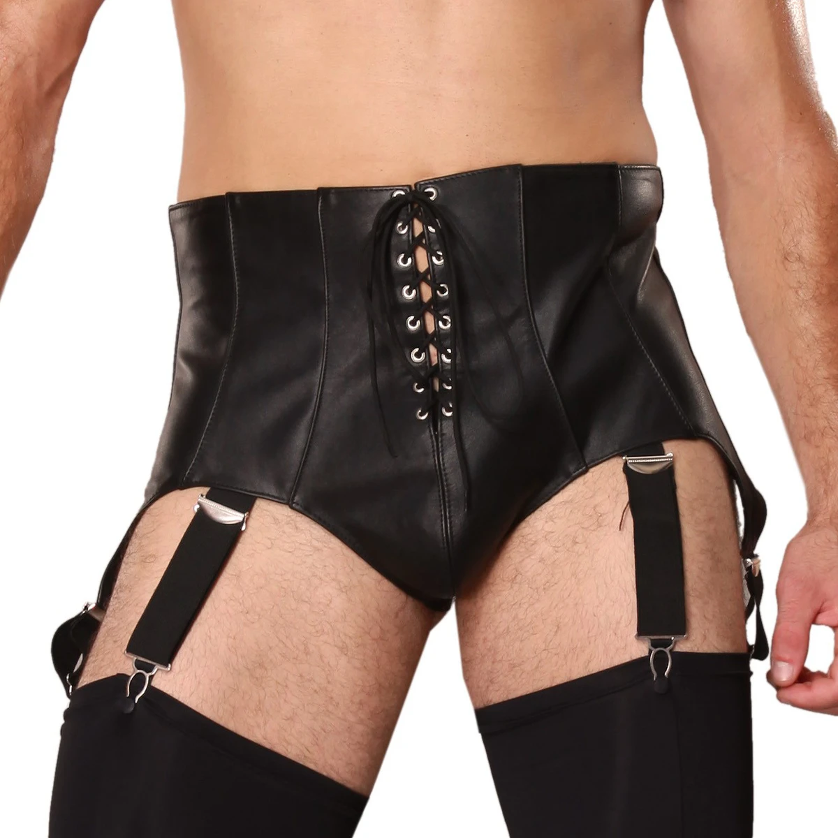 Hoge kwaliteit lederen tailleslip voor heren met rijgveters aan de voorzijde, opening aan de achterkant en 3 brede jarretels aan beide kanten. Een uniek fetisj kledingstuk dat ook nog eens gemakkelijk aan te trekken is dankzij de rits aan de achterzijde en met de veters naar perfectie geregen kan worden.