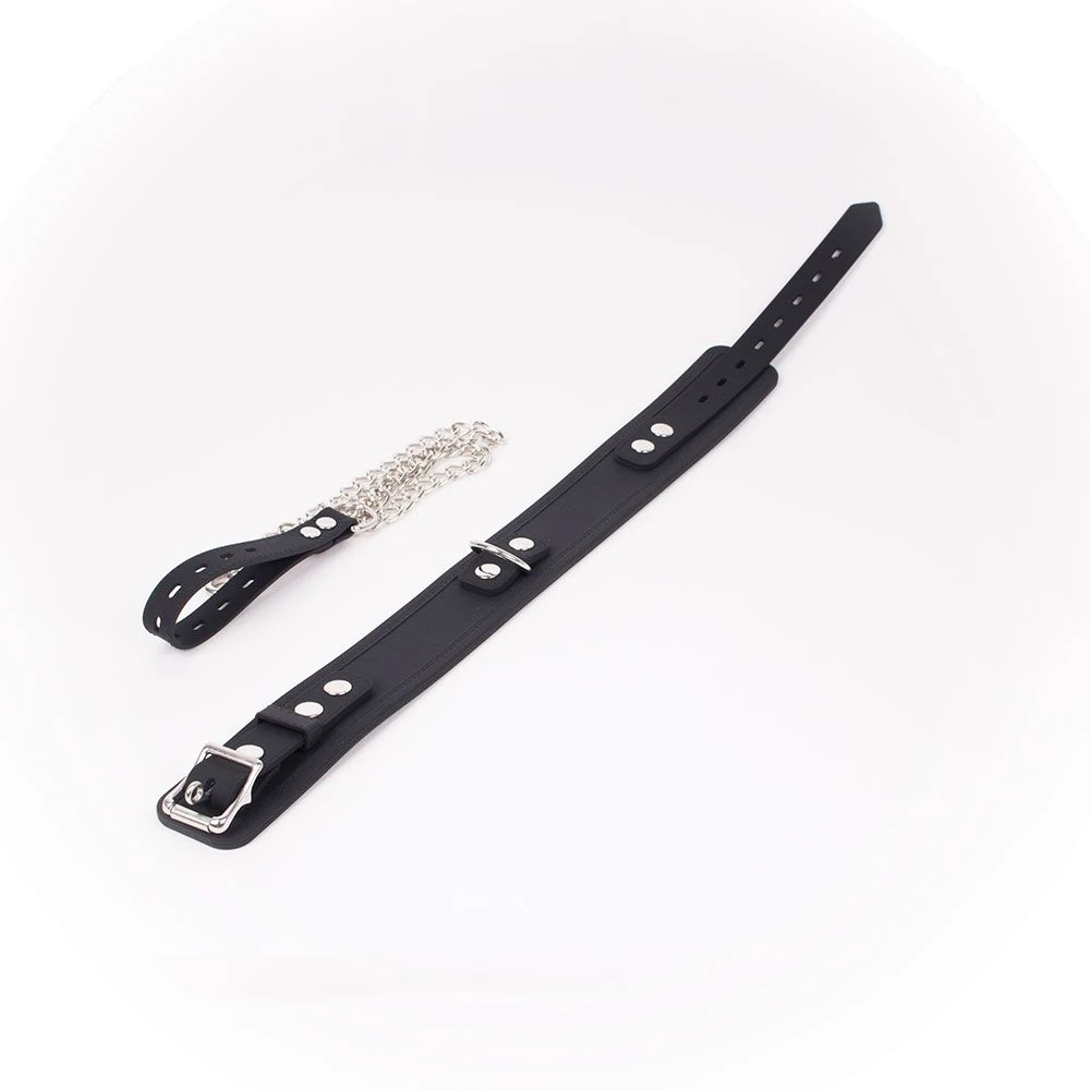 Deze Deluxe Collar geeft u een luxe gevoel door het gladde en zijdezachte siliconen materiaal van de collar. Er is een mooie zilveren ketting meegeleverd en een band met studs om vast te houden. Met afsluitbare gesp. Laat het spel beginnen!