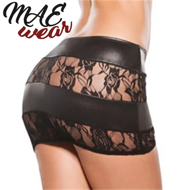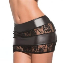 Vestig de aandacht waar het moet en toon de koopwaa rin dit verleidelijke wetlook en kanten minirokje! Elastich en compleet met bijpassen wetlook string. Zowel kinky als trendy, dit rokje staat jou fantastisch zowel in de club als in de slaapkamer!