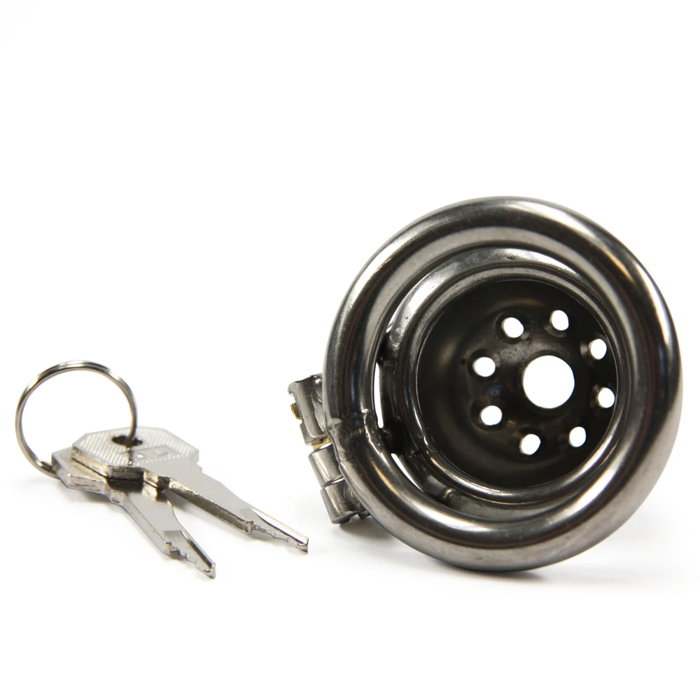 Meedogenloze stalen peniskooi speciaal voor de allerkleinste pikken! Deze kuisheidskooi is voorzien van ventilatiegaten aan de voorkant en een handig cylinderslot aan de bovenkant.