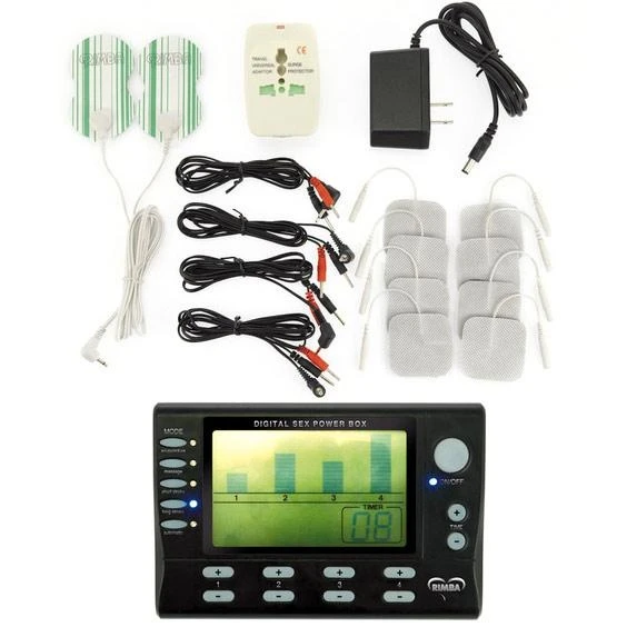 4 KANALEN – AC 110V – 230 V / DC 3 X AAA PENLITE. SET COMPLEET MET ALLE ACCESSOIRES! Het principe van electro sex stimulatie is het creëren van een oncontroleerbare spiercontractie door middel van een stroom. De stroomschok prikkelt een zenuw en die zorgt voor een samentrekking van één of meerdere spieren gelegen in de directe nabijheid van de zenuw. Hoe sterker de prikkel, des te groter de kracht van de samentrekking van de spier zal zijn. Rimba heeft een groot aantal accessoires ontworpen welke op de alle verschillende Rimba power boxen zijn aan te sluiten. De accessoires elektrodes hebben verschillende vormen en afmetingen, afgestemd op de erogene zones voor zowel de man als de vrouw.