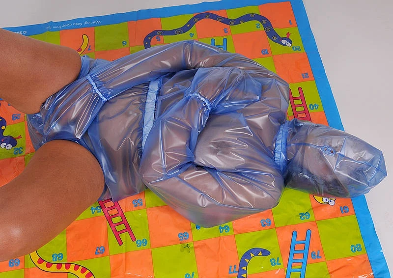 Naughty AB Sissy Slave wordt gestraft in haar gesloten bondage pak. Dit pak heeft wanten met elastiek in de mouwen, elastiek in de taille en benen, met op de rug een ritssluiting en vaste capuchon met elastiek in de nek. Zet Sissy in haar pak, terwijl je gebruik van haar maakt! 81 cm lang.