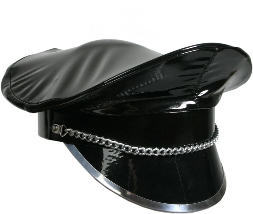 PVC black police hat with chain by Ledapol #1251