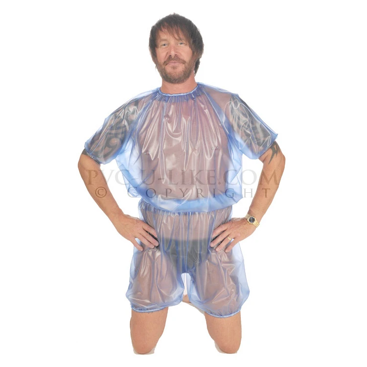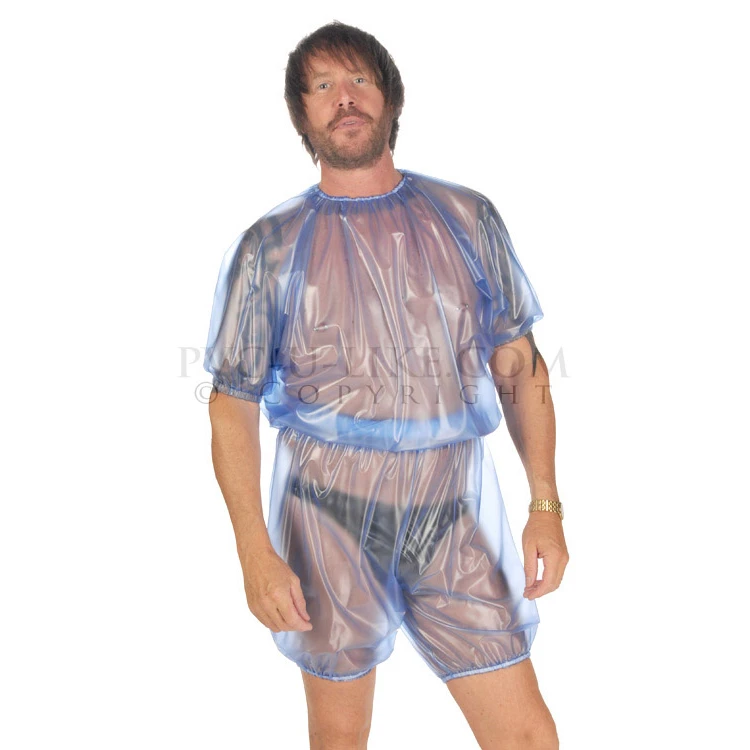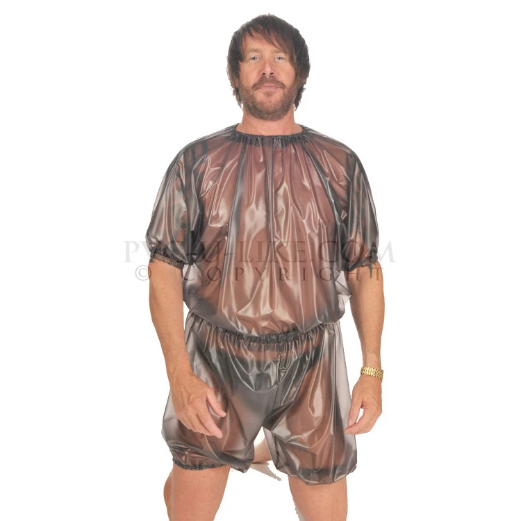 Gebaseerd op PVC-U-Like’s romper pak, dit speelpakje voor heren heeft geintegreerde bloomers, rits aan de achterkant en korte elastische mouwen, taille en beengaten. Perfect voor zowel plastic fetisj als ABDL play!