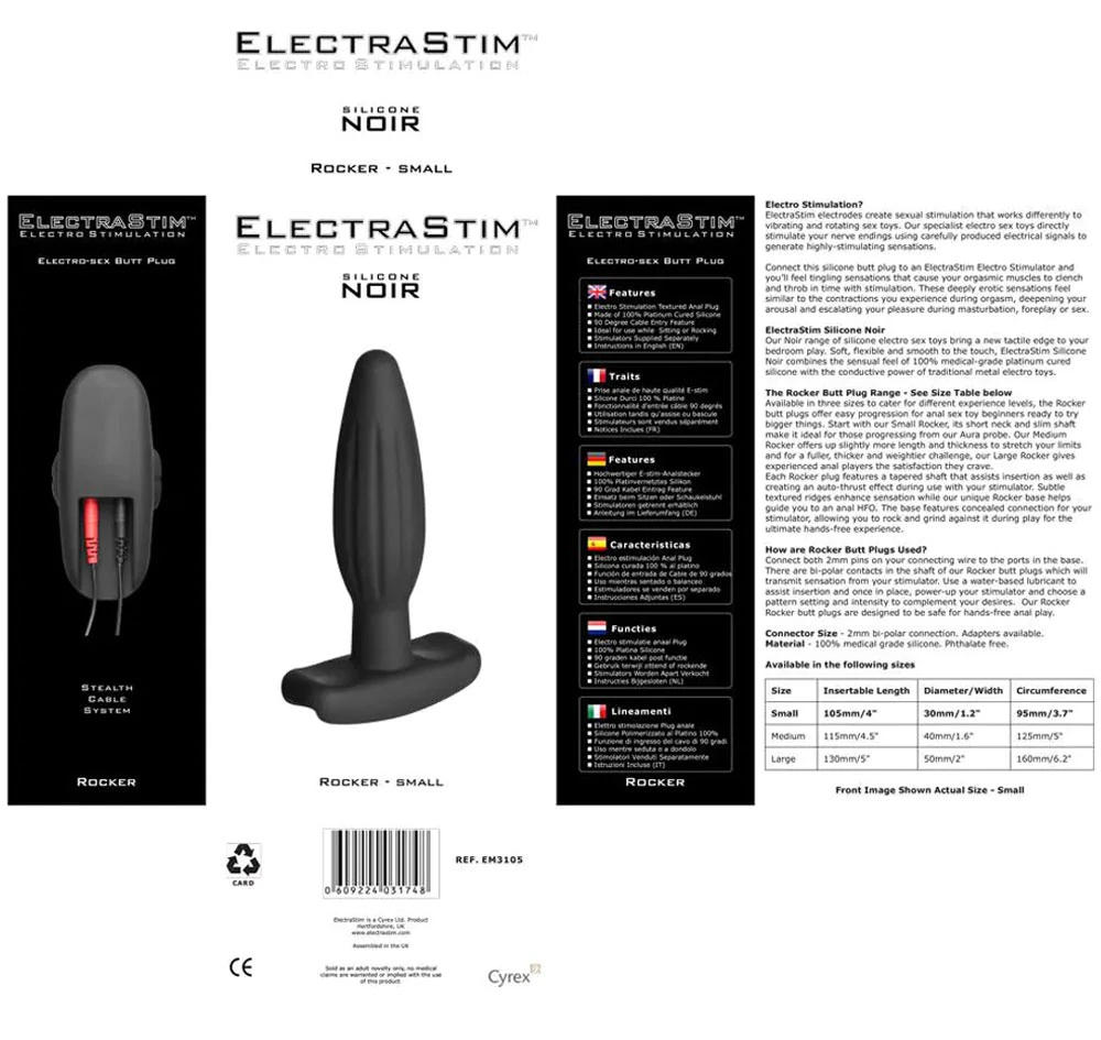 Available in small, medium and large sizes, the Rocker Butt Plugs are the perfect follow-on for fans of our Aura, Nona and Sirius electrodes who crave a thicker, fuller and more dynamic experience during their anal electro play.