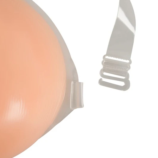 Realistisch uitziende en aanvoelende siliconen borsten met verstelbare, afneembare bandjes. Met lichte uitsparing aan de achterkant van de borsten zodat deze BH naast door heren ook door dames met kleinere borsten gedragen kan worden. Ideaal voor travestie, drag queens en sissy play!