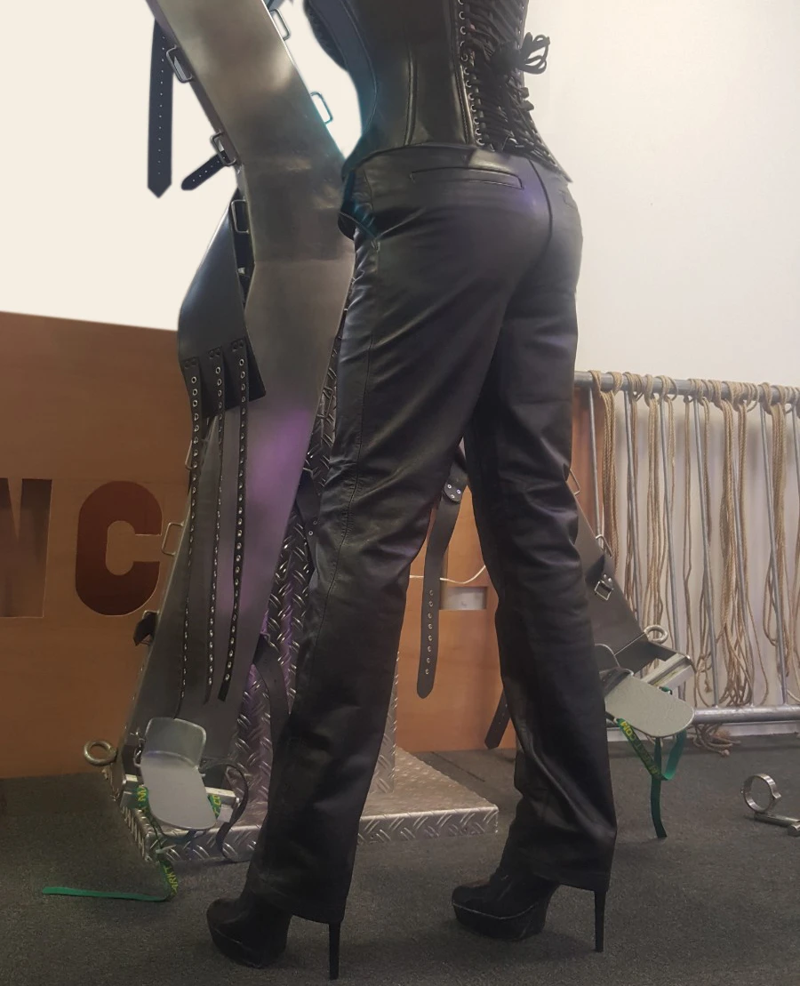 Strakke Zwart lederen dames broek van Carmen