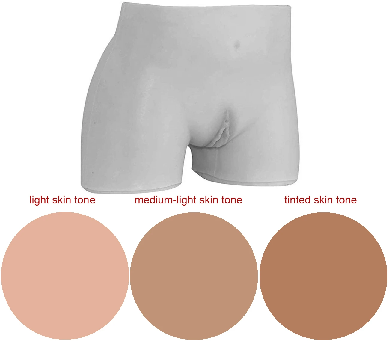 De schaamlippen en de vagina zijn nauwsluitend en overtuigend, en verbergen de penis volledig op natuurlijke wijze in een daarvoor aangebrachte siliconen sleeve;