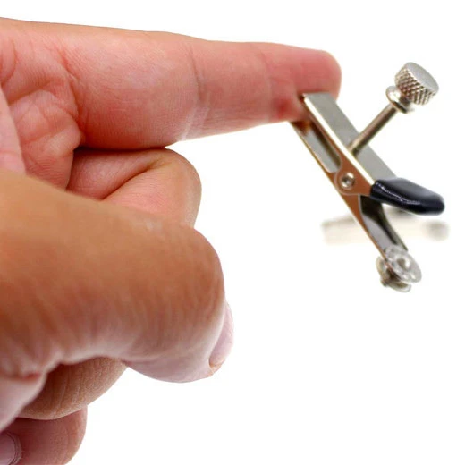 Een set van twee verstelbare tepelklemmen voor gebruik in je elektrostimulatiespel.