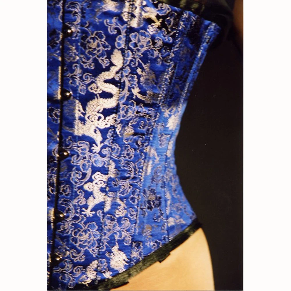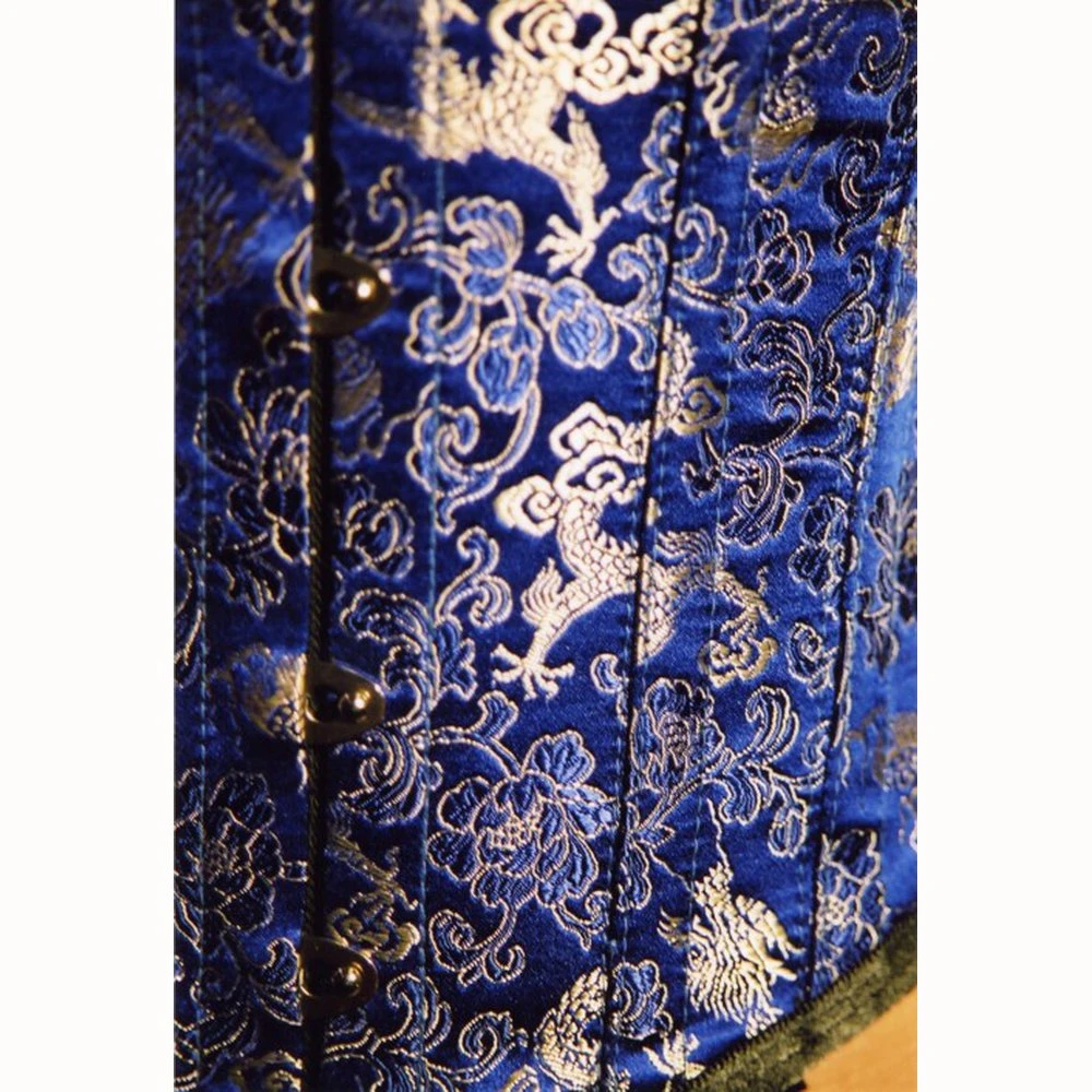 Prachtig zijden Korset met Blauw/Gouden Chinese draak-design